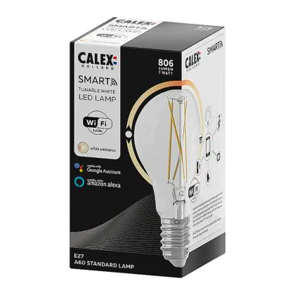 Je kunt ook meerdere Calex smart lampen koppelen aan onder meer een Google Home of Amazon Alexa apparaat. Hierdoor wordt het mogelijk om Calex verlichting met jouw eigen stemgeluid te bedienen. Door het geven van eenvoudige instructies als; ‘Hey Google, dim de lamp boven de tv’, heb je dit al binnen no-time geregeld! Tevens kun je deze peervormige E27 Calex Smart verlichting bedienen via een officiële Calex Smart afstandsbediening. Deze Calex lamp werkt ook op een wandschakelaar, maar niet op een dimmerschakelaar. Hou daar rekening mee. Ben je op zoek naar Smart verlichting met een andere fitting of in een andere vorm? Klik dan hier om ons volledige assortiment te bekijken!