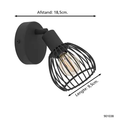 Eglo Wandlamp Sonni Staal Zwart | IP20 - Geschikt voor 1x E14