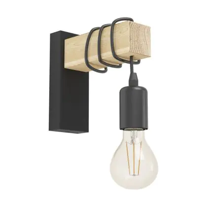 Eglo Wandlamp Townshend Staal Hout Zwart Bruin | IP20 - Geschikt voor 1x E27