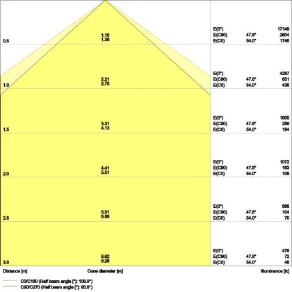 ![]() De kleurcode is een combinatie van de kleurweergave (CRI) en lichtkleur (Kelvin). Het eerste getal is de kleurweergave (1 = zeer slechte kleurweergave, 9 = maximale kleurechtheid). Het tweede en derde cijfer betreft de lichtkleur. Een lamp met kleurcode 830 heeft bijvoorbeeld een goede kleurweergave en straalt een warm wit licht uit (3000K), waar een lamp met de kleurcode 940 een uitstekende CRI heeft en een koel wit licht (4000K) uitstraalt. |