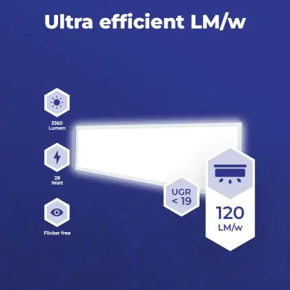 Met de aanschaf van dit LED paneel van 120x30cm maak je in meerdere opzichten een goede keuze. Met een gemiddelde levensduur van 70000 uur ben je verzekerd van een duurzaam product, dat vele jaren optimaal blijft presteren. Bovendien draag je een steentje bij aan een schoner milieu, want LED verlichting vermindert de C02 uitstoot en bevat geen giftige stoffen zoals kwik.